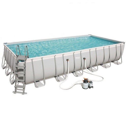 בריכה לגינה / לחצר מלבנית תוצרת חברת BESTWAY עשויה ממסגרת מתכת מגולוונת, דוחה אבק וחלודה ויריעת פוליאסטר ו- PVC.