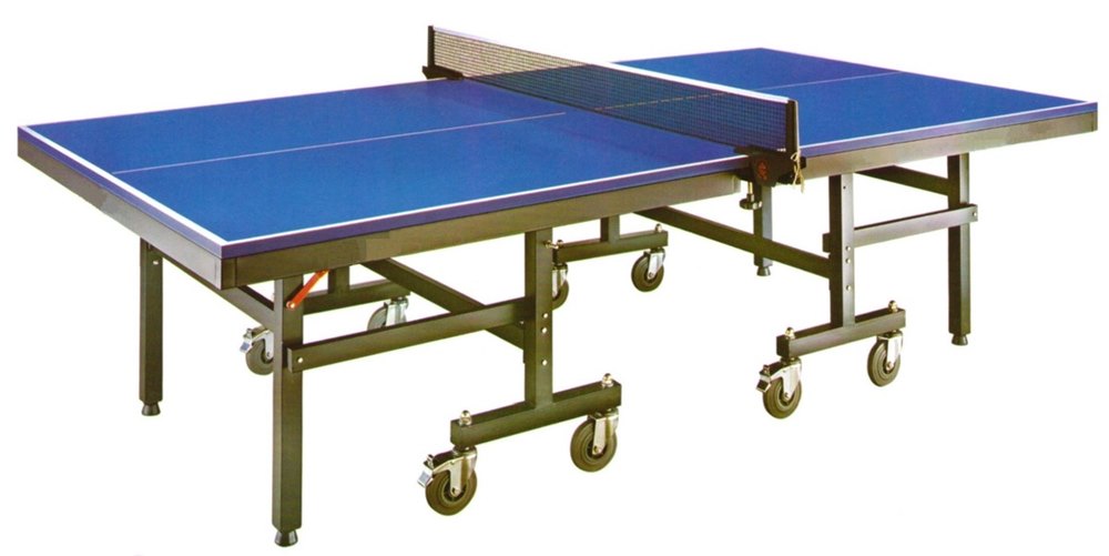 2 חלקים מתקפלים. עובי פלטות 25 מ"מ כולל מסגרת פרופיל מתכת 50X25 מ"מ מסביב, לצורך הגנה על הפלטות. רגליים חזקות פרופיל 50X50 מ"מ בתוספת גומיות לכיוון ויצוב גובה השולחן. 4 גלגלי מתכת בקוטר 125 מ"מ עם מיסבים וציפוי לשינוע השולחן. אפשרות למשחק עצמי. (לא כולל רשת ועמודים).