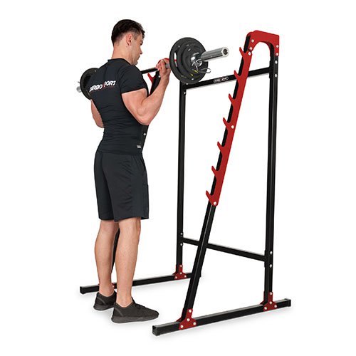 לסטנד המשקולות 7 שלבים משופעים להנחת מוט המשקולות ותפיסתו בתרגיל כושל.