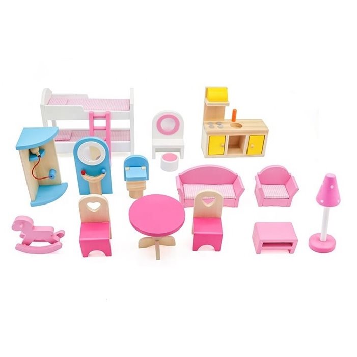 בית הבובות כולל ריהוט מפואר שכולל 18 חלקים
