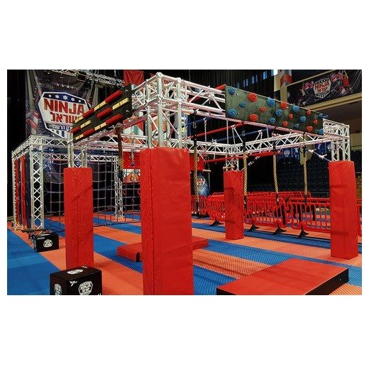 קונסטרוקציית טראסים בנויה ע"פ מידה כבסיס למכשולי נינג’ה שונים.