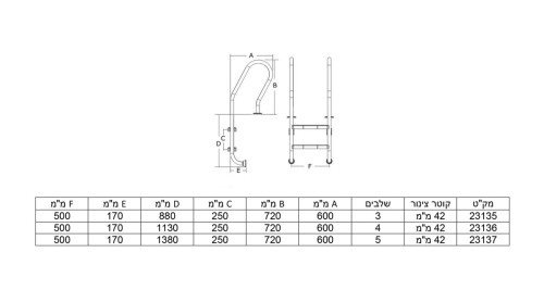 סולם נירוסטה 228903 לבריכה (316) 3 שלבים דגם N מוסטנג