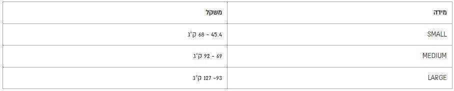 הערכה מכילה חגורה מתכווננת בגודל של 152.5 ס"מ .