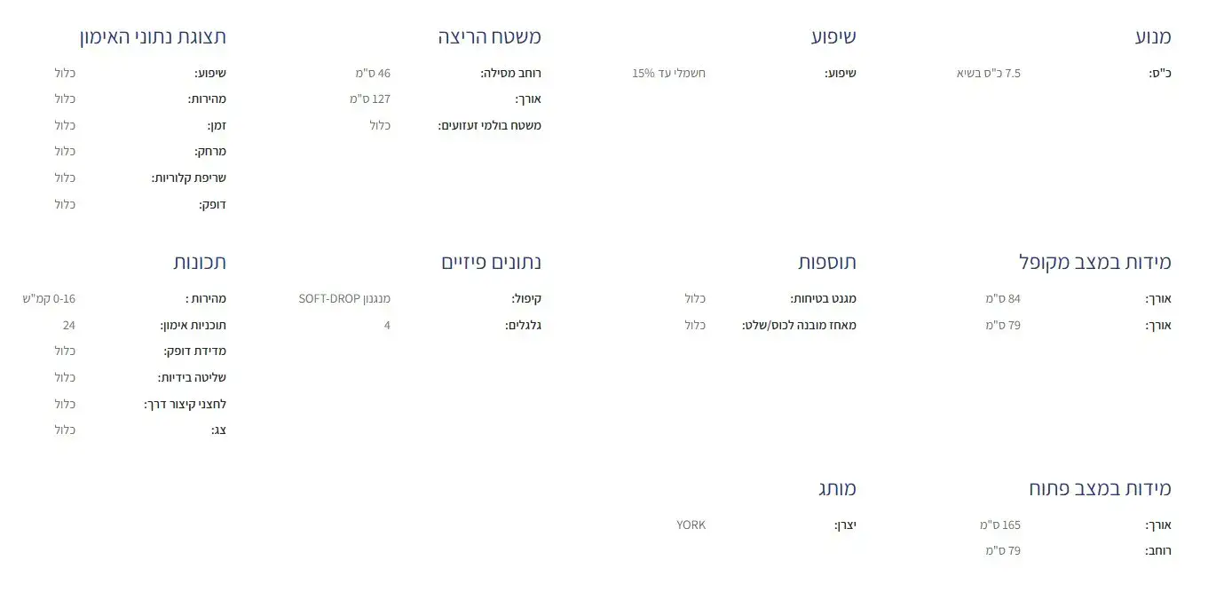פתוח - אורך 165 ס"מ, רוחב 79 ס"מ