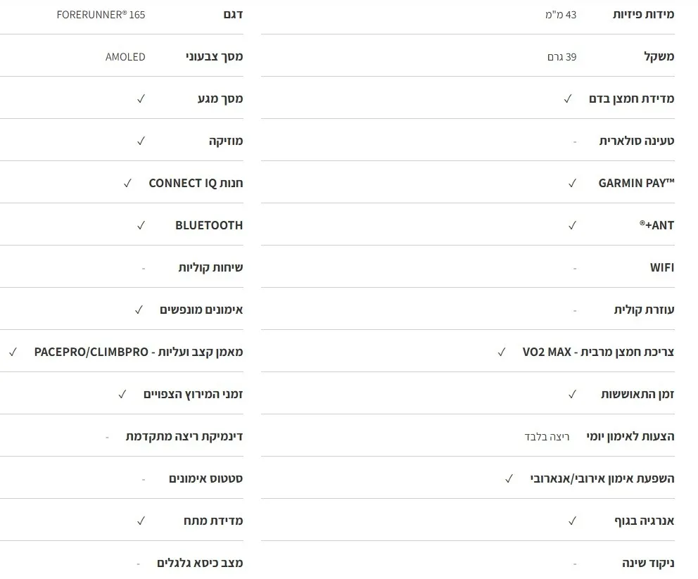 25+ סוגי פעילויות – מעל 25 סוגי פעילויות מובנות כולל ריצה, רכיבה, אימוני HIIT, אימוני כוח שחיה בבריכה ובמים פתוחים ועוד.