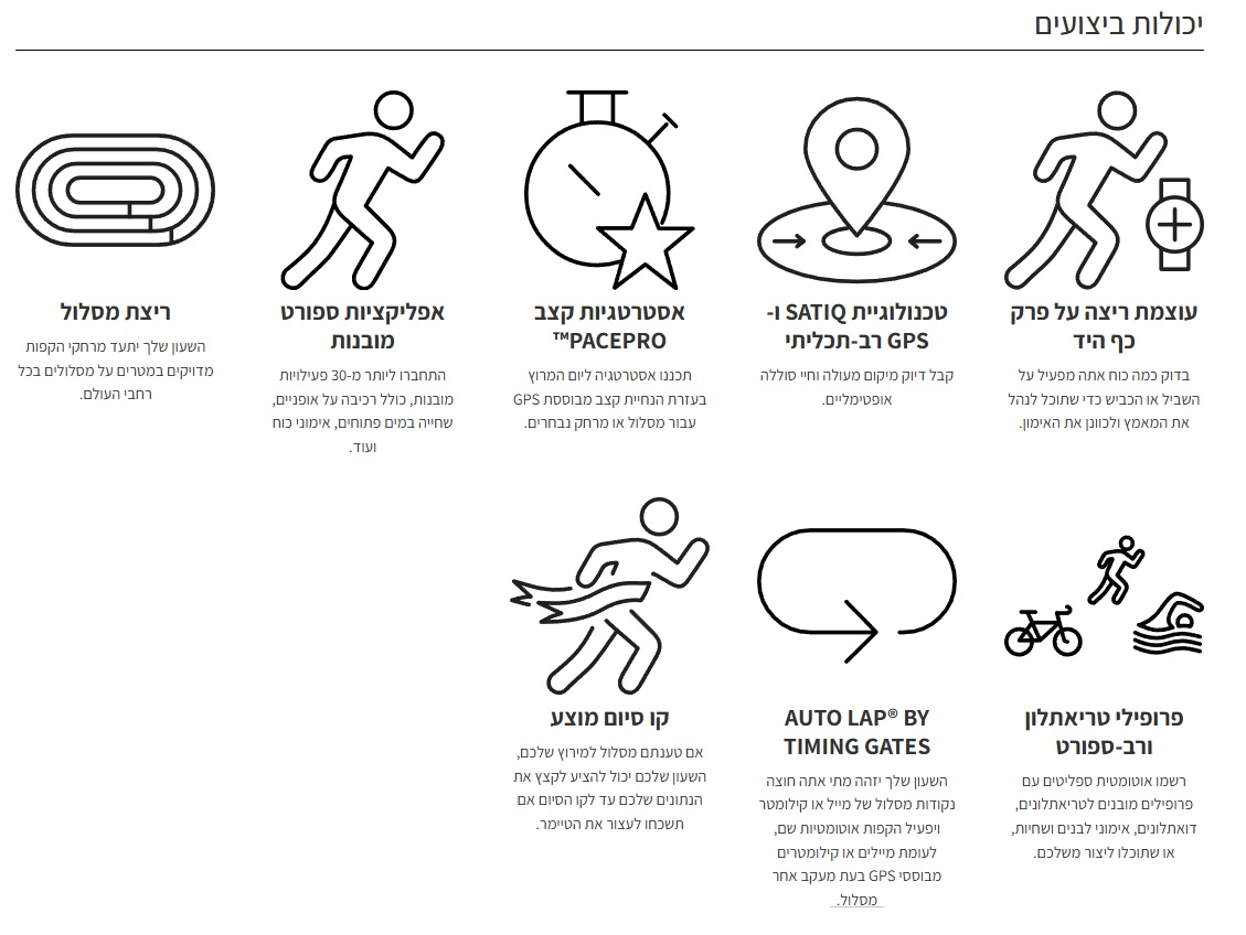 30+ סוגי פעילויות שונות – מעל 30 סוגי פעילויות ספורט שונות כולל פרופיל טריאתלון מובנה.