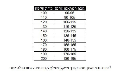 מידות: 140, 150, 160, 170, 180, 190, 200 ס"מ