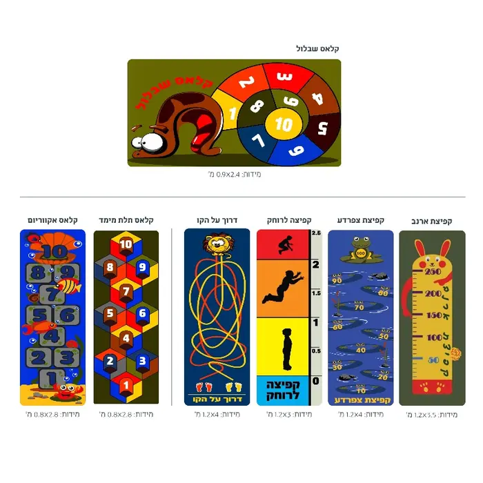 מגוון רחב של משחקי רצפה צבעוניים המשתלבים בשטח