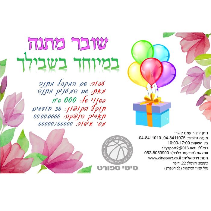 שובר מתנה לכל מטרה ולכל קנייה בחנות